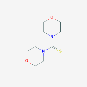 Dimorpholin-4-ylmethanethione (CAS: Not explicitly provided in evidence) is a sulfur-containing organic compound characterized by two morpholine rings linked via a methanethione group (-C=S). The compound’s stability, solubility, and reactivity are likely influenced by these functional groups .