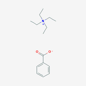 The production of this compound can be accomplished through several established synthetic methods, including reflux techniques. One common approach involves heating tetraethylammonium salts with benzoic acid under reflux conditions. This method facilitates the formation of the desired quaternary ammonium salt. The reaction is typically carried out at temperatures ranging from 80 to 100°C. Another route is the direct neutralization of tetraethylammonium hydroxide with benzoic acid, which yields this compound and water.