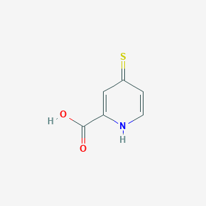 4-Mercaptopyridine-2-carboxylic acid (CAS 18103-74-7) is a heterocyclic compound with a pyridine backbone substituted by a mercapto (-SH) group at the 4-position and a carboxylic acid (-COOH) group at the 2-position. Its molecular formula is C₆H₅NO₂S, with a molecular weight of 155.17 g/mol. Key properties include: