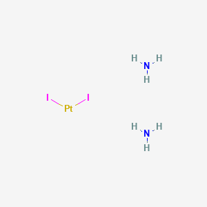 One of the most significant applications of cis-diiododiammineplatinum(II) is in the synthesis of carboxylato platinum(II) complexes, most notably as a key intermediate in the production of Carboplatin. google.com Carboplatin, or cis-diammine(1,1-cyclobutanedicarboxylato)platinum(II), is a major second-generation anticancer drug with a different toxicity profile compared to its predecessor, Cisplatin (B142131). ijcce.ac.irsid.irresearchgate.net The synthesis of Carboplatin often leverages the diiodo-complex to achieve high purity and yield. google.com