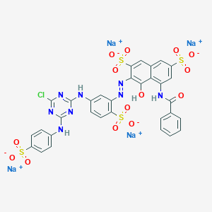 C1=CC=C(C=C1)C(=O)NC2=C3C(=CC(=C2)S(=O)(=O)[O-])C=C(C(=C3O)N=NC4=C(C=CC(=C4)NC5=NC(=NC(=N5)NC6=CC=C(C=C6)S(=O)(=O)[O-])Cl)S(=O)(=O)[O-])S(=O)(=O)[O-].[Na+].[Na+].[Na+].[Na+] |