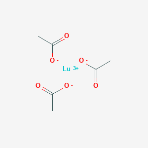 The structure of the hydrate features a lutetium(III) ion coordinated by oxygen atoms from both the acetate ligands and water molecules. sigmaaldrich.com The compound's utility stems from its ability to controllably release Lu³⁺ ions in solution, making it an excellent starting material for creating more complex structures. For instance, it readily reacts with phosphoric acid to produce lutetium phosphate (B84403) (LuPO₄) and with ammonium (B1175870) fluoride (B91410) to yield lutetium fluoride (LuF₃). wikipedia.org