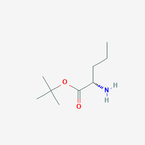 L-norvaline t-butyl ester is a chemically modified derivative of the proteinogenic amino acid L-norvaline. This modification, through the addition of a t-butyl ester group, alters its physicochemical properties, rendering it a valuable tool in various scientific applications, notably in peptide synthesis and as a precursor for pharmacologically active molecules. This technical guide provides a comprehensive overview of the core physicochemical properties of this compound, detailed experimental protocols for its synthesis and application, and visual representations of relevant biological pathways and experimental workflows.