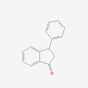 3-Phenyl-1-indanone is an aromatic ketone characterized by a phenyl group attached to the 3-position of an indanone scaffold. This compound serves as a valuable building block in organic synthesis, particularly in the development of pharmaceuticals and agrochemicals.[1] Its structural motif is found in a variety of molecules exhibiting significant biological activities, including potential anti-inflammatory and antioxidant properties.[1] The indanone core is a privileged structure in medicinal chemistry, famously represented in drugs like Donepezil for Alzheimer's disease, highlighting the therapeutic potential of this class of compounds.[2][3] This guide provides a comprehensive overview of the core chemical properties, synthesis, and characterization of this compound, tailored for professionals in chemical and pharmaceutical research.