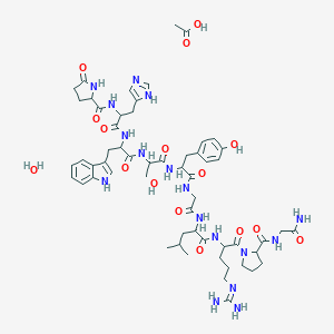 | Record name | acetic acid;N-[1-[[1-[[1-[[1-[[2-[[1-[[1-[2-[(2-amino-2-oxoethyl)carbamoyl]pyrrolidin-1-yl]-5-(diaminomethylideneamino)-1-oxopentan-2-yl]amino]-4-methyl-1-oxopentan-2-yl]amino]-2-oxoethyl]amino]-3-(4-hydroxyphenyl)-1-oxopropan-2-yl]amino]-3-hydroxy-1-oxopropan-2-yl]amino]-3-(1H-indol-3-yl)-1-oxopropan-2-yl]amino]-3-(1H-imidazol-5-yl)-1-oxopropan-2-yl]-5-oxopyrrolidine-2-carboxamide;hydrate | |