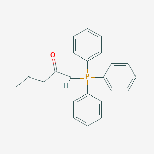 1-(Triphenyl-lambda5-phosphanylidene)-pentan-2-one is typically synthesized from butyltriphenylphosphonium bromide through deprotonation using a strong base such as butyllithium. The reaction proceeds as follows: [ \text{Ph}_3\text{PCH}_3\text{Br} + \text{BuLi} \rightarrow \text{Ph}_3\text{PCH}_2 + \text{LiBr} + \text{BuH} ] The phosphorane is generally not isolated but used in situ for further reactions .