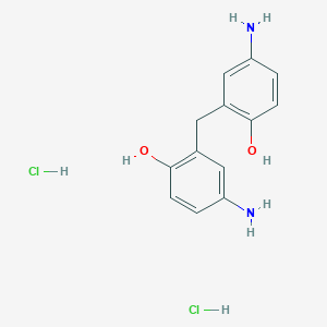 This compound is a derivative of aminophenol, characterized by two 4-aminophenol groups linked by a methylene bridge. Its molecular formula is C13H14Cl2N2O2, and it exists as a dihydrochloride salt, enhancing its solubility in water.