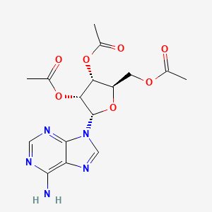 The acetyl groups at the 2', 3', and 5' positions of the ribose moiety serve as protective modifications, enhancing the compound’s stability during synthetic procedures. This structural feature distinguishes it from native adenosine, where hydroxyl groups remain unmodified.