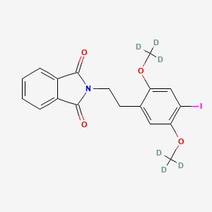 This compound is a deuterium-labeled derivative of N-[2-(2,5-dimethoxy-4-iodophenyl)ethyl]phthalimide. The deuterium atoms replace six hydrogens in the methoxy (-OCH₃) groups, enhancing its utility in isotopic tracing and pharmacokinetic studies. The core structure includes a phthalimide moiety linked to a substituted phenethylamine backbone, featuring iodine at the 4-position and methoxy groups at the 2- and 5-positions .