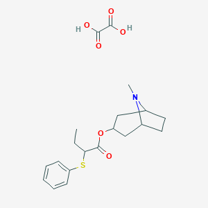 This compound is a derivative of tropine, a bicyclic alkaloid, modified with a phenylthio group and an oxalate salt formation. The molecular structure can be represented as follows: