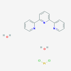 Dichloroplatinum;2,6-dipyridin-2-ylpyridine;dihydrate, also known as Chloro(2,2′:6′,2′′-terpyridine)platinum(II) chloride dihydrate, is a platinum-based compound with significant biological activity, particularly in the context of cancer treatment and molecular biology. Its unique structure allows it to interact with DNA, leading to various biochemical effects that have been explored in numerous studies.