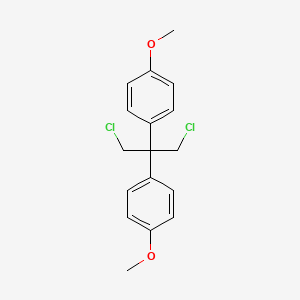 The mechanism of action of Propane, 2,2-bis(p-methoxyphenyl)-1,3-dichloro- involves its interaction with specific molecular targets, such as enzymes or receptors. The methoxyphenyl groups can engage in π-π interactions with aromatic residues in proteins, while the chlorine atoms can form halogen bonds with nucleophilic sites. These interactions can modulate the activity of the target molecules, leading to various biological effects.