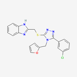 InChI=1S/C21H16ClN5OS/c22-15-6-3-5-14(11-15)20-25-26-21(27(20)12-16-7-4-10-28-16)29-13-19-23-17-8-1-2-9-18(17)24-19/h1-11H,12-13H2,(H,23,24) |