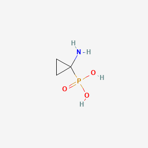This compound is a chiral molecule, and its stereochemistry plays a pivotal role in its biological activity. The spatial arrangement of the amino and phosphonic acid groups relative to the cyclopropyl plane determines the enantiomer-specific interactions with chiral biological targets like receptors and enzymes.