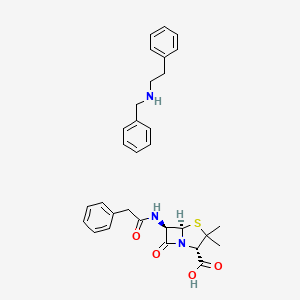 This compound is the salt formed from the reaction of benzylpenicillin, a potent beta-lactam antibiotic, and N-benzyl-2-phenylethan-1-amine (benethamine). This salt formation significantly reduces the solubility of the penicillin, thereby prolonging its release and duration of action upon intramuscular injection. This characteristic makes it a valuable therapeutic agent for the treatment of various bacterial infections where sustained antibiotic levels are required. The synthesis is a straightforward acid-base reaction, resulting in the formation of a stable, crystalline product.