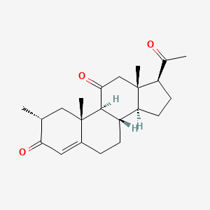 2alpha-Methyl-11-oxoprogesterone (CAS: 3642-85-1) is a synthetic progesterone derivative with the molecular formula C22H30O3 and a unique structural configuration. Its IUPAC name and SMILES notation ([C@]12(C(=CC(=O)CC1)C@@HC[C@@]3([C@@]2(C(C[C@@]4(C@@HCC[C@@]34[H])C)=O)[H])[H])C) highlight the presence of a 2α-methyl group and an 11-oxo substituent, distinguishing it from endogenous progesterone .