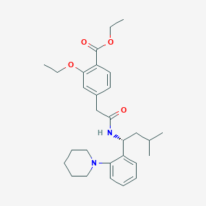 | Chemical Name | ethyl 2-ethoxy-4-[2-[[(1R)-3-methyl-1-(2-piperidin-1-ylphenyl)butyl]amino]-2-oxoethyl]benzoate | nih.gov |