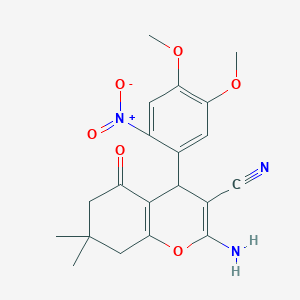 2-amino-4-(4,5-dimethoxy-2-nitrophenyl)-7,7-dimethyl-5-oxo-6,8-dihydro-4H-chromene-3-carbonitrile |