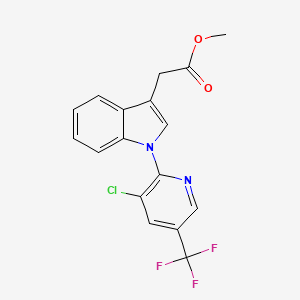 The mechanism of action of methyl 2-{1-[3-chloro-5-(trifluoromethyl)-2-pyridinyl]-1H-indol-3-yl}acetate involves its interaction with specific molecular targets and pathways. The trifluoromethyl group enhances the compound’s ability to interact with biological targets, potentially affecting protein function and cellular processes . The exact molecular targets and pathways involved are still under investigation, but the compound is believed to modulate key signaling pathways in cells .