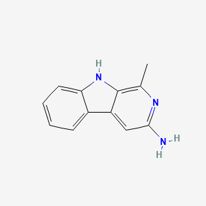 Synthetic Routes and Reaction Conditions: 3-Aminoharman can be synthesized through several methods. One common approach involves the thermolysis of substituted 4-aryl-3-azidopyridines. Another method involves the reaction of 9H-pyrido[3,4-b]indole-3-carboxylic acid hydrazide with hydrogen chloride and sodium nitrite in lithium hydroxide monohydrate at low temperatures, followed by refluxing with glacial acetic acid .