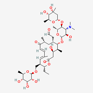 This compound is a complex macrolide characterized by a 16-membered lactone ring glycosidically linked to two deoxy sugars, mycaminose and mycarose. Its systematic IUPAC name is 2-[(4R,5S,6S,7R,9R,11E,13E,15R,16R)-6-[(2R,3R,4R,5S,6R)-5-[(2S,4R,5S,6S)-4,5-dihydroxy-4,6-dimethyloxan-2-yl]oxy-4-(dimethylamino)-3-hydroxy-6-methyloxan-2-yl]oxy-16-ethyl-4-hydroxy-5,9,13-trimethyl-2,10-dioxo-15-[[(2R,3R,4R,5S,6R)-3,4,5-trihydroxy-6-methyloxan-2-yl]oxymethyl]-1-oxacyclohexadeca-11,13-dien-7-yl]acetaldehyde[1]. The chemical structure of this compound is presented in Figure 1.