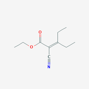 The structural framework of this compound is characterized by a central carbon-carbon double bond. At the α-position, it is substituted with both an ethyl ester group (-COOEt) and a cyano group (-CN). The β-position is substituted with two ethyl groups, originating from the precursor ketone, 3-pentanone. This highly functionalized structure is key to its synthetic utility.