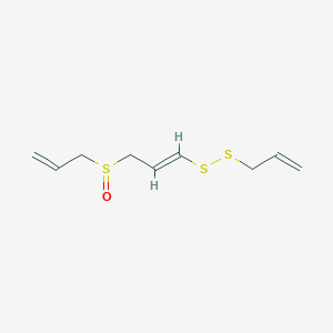 Understanding the formation of this compound necessitates a brief overview of its precursor, allicin. In garlic, the stable precursor alliin [(+)-(S)-allyl-L-cysteine-sulfoxide] is compartmentalized separately from the enzyme alliinase.[4] Upon tissue damage (e.g., crushing or cutting), alliinase comes into contact with alliin and catalyzes its conversion to allylsulfenic acid. Two molecules of allylsulfenic acid then rapidly condense to form one molecule of allicin (diallyl thiosulfinate).