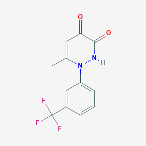 The mechanism of action of 3,4-Pyridazinedione, 1,2-dihydro-6-methyl-1-(3-(trifluoromethyl)phenyl)- involves its interaction with specific molecular targets in biological systems. The compound can inhibit certain enzymes or receptors, leading to its therapeutic effects. For example, it may inhibit the activity of enzymes involved in inflammation or cancer cell proliferation . The exact molecular pathways and targets are still under investigation, but its ability to modulate biological processes makes it a promising candidate for drug development.