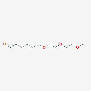 1-Bromo-6-[2-(2-methoxyethoxy)ethoxy]hexane can be synthesized through the reaction of 1,6-dibromohexane with triethylene glycol monomethyl ether in the presence of a base such as potassium carbonate. The reaction typically occurs under reflux conditions in an organic solvent like acetonitrile. The product is then purified through distillation or recrystallization.