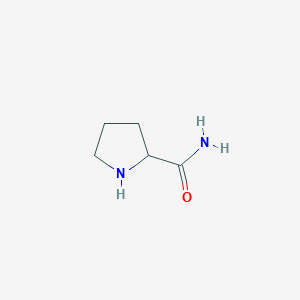 (R)-Pyrrolidine-2-carboxamide is a white crystalline powder with the molecular formula C5H10N2O and a molecular weight of 114.15 g/mol .[1] It is moderately soluble in water and ethanol. The pyrrolidine ring imparts a constrained conformation, making it an attractive scaffold for designing molecules with specific spatial orientations to interact with biological targets.