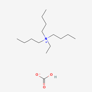 The mechanism of action of tributylethylammonium hydrogen carbonate involves its ability to act as a buffer and stabilize pH levels in various systems. It interacts with molecular targets such as enzymes and proteins, modulating their activity and stability. The compound’s unique structure allows it to participate in various biochemical pathways, enhancing its effectiveness in different applications .