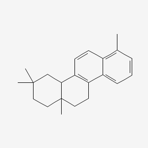 Die Synthese von Chrysen, 1,2,3,4,4a,11,12,12a-Octahydro-3,3,7,12a-Tetramethyl-, beinhaltet typischerweise mehrstufige organische Reaktionen. Der Prozess beginnt häufig mit der Herstellung von Zwischenverbindungen durch Cyclisierungs- und Methylierungsreaktionen. Häufige Reagenzien, die in diesen Reaktionen verwendet werden, umfassen starke Säuren oder Basen, Katalysatoren und Lösungsmittel wie Dichlormethan oder Toluol. Die Reaktionsbedingungen wie Temperatur und Druck werden sorgfältig kontrolliert, um sicherzustellen, dass das gewünschte Produkt mit hoher Reinheit und Ausbeute erhalten wird.