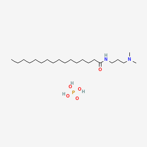 The mechanism of action of N-(3-(Dimethylamino)propyl)palmitamide phosphate involves its interaction with cell membranes and proteins. The compound’s amphiphilic nature allows it to integrate into lipid bilayers, affecting membrane fluidity and permeability. This can influence various cellular processes, including signal transduction and transport mechanisms. The dimethylamino group may also interact with specific molecular targets, modulating their activity and function .