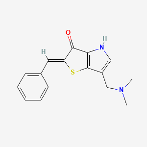 The mechanism of action of 2-Benzylidene-6-((dimethylamino)methyl)-2H-thieno(3,2-b)pyrrol-3(4H)-one involves its interaction with specific molecular targets. For example, in medicinal applications, it may inhibit certain enzymes or receptors involved in disease pathways. The exact molecular targets and pathways can vary depending on the specific application.