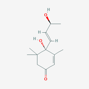 Pulicaria undulata (L.) C.A.Mey., a member of the Asteraceae family, is a plant known for its use in traditional medicine and is a rich source of various secondary metabolites. Phytochemical investigations of this species have revealed the presence of flavonoids, terpenoids, and phenolic compounds. Notably, this compound has been reported to be present in the n-butanol-soluble fraction of the whole plant extract of Pulicaria undulata[1]. Megastigmane glycosides, the class of compounds to which this compound belongs, are known for a variety of biological activities, including antibacterial, anti-inflammatory, anticancer, and hepatoprotective effects[2].