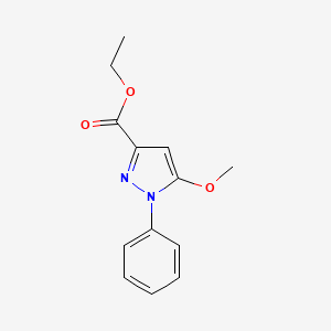 Ethyl 5-methoxy-1-phenyl-1H-pyrazole-3-carboxylate is a heterocyclic compound that belongs to the pyrazole family. Pyrazoles are known for their diverse biological activities and are widely used in medicinal chemistry. This compound is characterized by a pyrazole ring substituted with an ethyl ester group at the 3-position, a methoxy group at the 5-position, and a phenyl group at the 1-position.