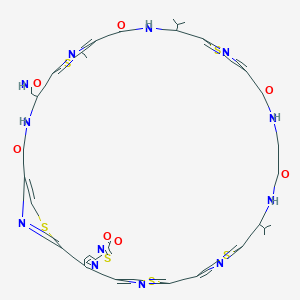 This compound is a macrocyclic peptide characterized by a complex structure containing multiple thiazole rings and a central pyridine core.[3][5][6] Its molecular formula is C43H42N12O7S6, with a molecular weight of 1031.2880 Da.[2] The detailed structure of this compound was elucidated through chemical degradation and extensive NMR spectral analyses.[6]