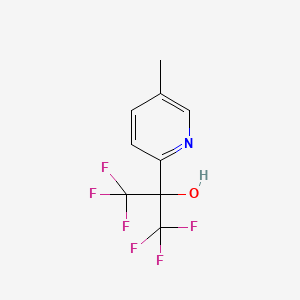 The mechanism of action of 1,1,1,3,3,3-Hexafluoro-2-(5-methylpyridin-2-yl)propan-2-ol involves its interaction with various molecular targets and pathways. The compound’s fluorinated nature enhances its lipophilicity, allowing it to interact with hydrophobic regions of proteins and enzymes. This interaction can lead to changes in protein conformation and activity, making it a valuable tool in biochemical studies.