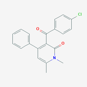 2(1H)-Pyridinone, 3-(4-chlorobenzoyl)-1,6-dimethyl-4-phenyl- (CAS Number: 143572-56-9) is a heterocyclic compound belonging to the pyridinone family. Its structure features a pyridinone ring with significant substitutions that contribute to its biological activity. This compound has garnered attention in medicinal chemistry for its potential therapeutic applications, particularly in the fields of anti-inflammatory, antimicrobial, and anticancer research.