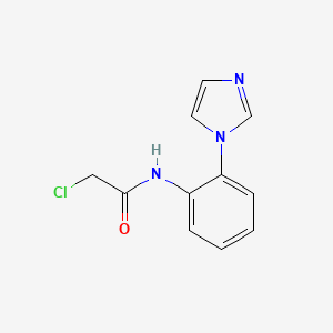 The mechanism of action of 2-Chloro-N-(2-imidazol-1-yl-phenyl)-acetamide would depend on its specific application. For instance, if it acts as an enzyme inhibitor, it might bind to the active site of the enzyme, blocking substrate access and inhibiting its activity. The molecular targets and pathways involved would vary based on the biological context and the specific enzymes or receptors it interacts with.