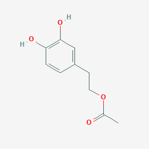 This compound is an ester formed from hydroxytyrosol and acetic acid. While the precise enzymatic pathways for its formation within the olive fruit are not fully elucidated, it is understood that the complex biochemical environment during malaxation—the slow mixing of the olive paste—plays a crucial role in the transformation of phenolic compounds[7]. Both chemical and enzymatic synthesis routes for this compound have been explored in laboratory settings, including enzymatic transesterification[8].