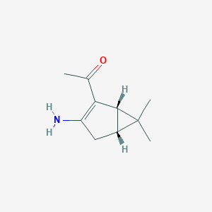 Similar compounds include other bicyclic structures with amino and ketone functional groups. ETHANONE, 1-[(1S,5R)-3-AMINO-6,6-DIMETHYLBICYCLO[3.1.0]HEX-2-EN-2-YL]- is unique due to its specific stereochemistry and the presence of both an amino and a ketone group in a compact bicyclic structure. This uniqueness makes it particularly valuable in synthetic and medicinal chemistry .