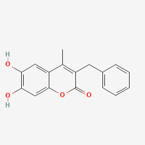 3-Benzyl-6,7-dihydroxy-4-methyl-2H-chromen-2-one, a member of the coumarin family, has garnered attention due to its diverse biological activities. This compound is characterized by its chromenone structure and exhibits significant pharmacological potential. This article delves into the biological activity of this compound, highlighting its mechanisms of action, biochemical properties, and relevant research findings.