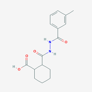 2-[[(3-Methylbenzoyl)amino]carbamoyl]cyclohexane-1-carboxylic acid is a complex organic compound with the molecular formula C16H20N2O4. This compound is characterized by the presence of a cyclohexane ring, a hydrazino group, and a methylbenzoyl moiety. It is primarily used in various scientific research applications due to its unique chemical properties.