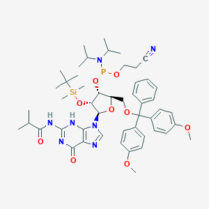 This compound, systematically named 5'-O-(4,4'-Dimethoxytrityl)-2'-O-(tert-butyldimethylsilyl)-N2-isobutyryl-guanosine-3'-O-(2-cyanoethyl-N,N-diisopropyl) phosphoramidite, is a modified and protected ribonucleoside essential for the automated solid-phase synthesis of RNA. The protecting groups are strategically placed to prevent unwanted side reactions during the stepwise assembly of the oligonucleotide chain.