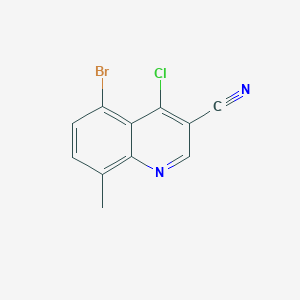 The synthesis of 5-Bromo-4-chloro-8-methylquinoline-3-carbonitrile typically involves the reaction of appropriate starting materials under specific conditions. One common method involves the condensation of 2-chloro-8-methylquinoline-3-carbaldehyde with a brominating agent in the presence of a suitable catalyst . The reaction conditions often include the use of solvents such as tetrahydrofuran and the presence of a base like sodium carbonate to facilitate the reaction .
