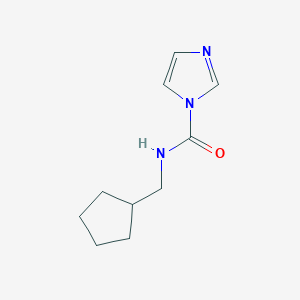 The mechanism of action of N-(cyclopentylmethyl)-1H-imidazole-1-carboxamide involves its interaction with specific molecular targets, such as enzymes or receptors. The imidazole ring can coordinate with metal ions or form hydrogen bonds with amino acid residues in the active site of enzymes, thereby inhibiting their activity. Additionally, the compound may modulate signaling pathways by binding to receptors and altering their conformation and function.
