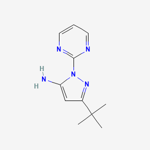 The synthesis of 3-tert-butyl-1-(pyrimidin-2-yl)-1H-pyrazol-5-amine typically involves the condensation of 3-tert-butyl-1-methyl-1H-pyrazol-5-amine with pyrimidine-2-carbaldehyde. This reaction is often carried out in methanol with magnesium sulfate as a drying agent .