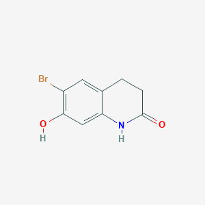 The mechanism of action of 6-bromo-7-hydroxy-3,4-dihydro-1H-quinolin-2-one is not fully understood. it is believed to interact with various molecular targets, including enzymes and receptors, to exert its biological effects. The hydroxy and bromo groups play a crucial role in its binding affinity and specificity towards these targets .