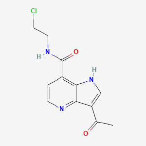 The mechanism of action of 3-acetyl-N-(2-chloroethyl)-1H-4-azaindole-7-carboxamide involves its interaction with specific molecular targets and pathways . The compound may exert its effects through the following mechanisms: